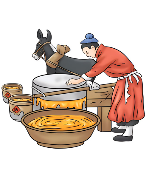 - 將炒好的芝麻用石磨磨成芝麻醬。芝麻醬磨的越細(xì)越好,使油料細(xì)胞充分破裂,以便取出油脂。